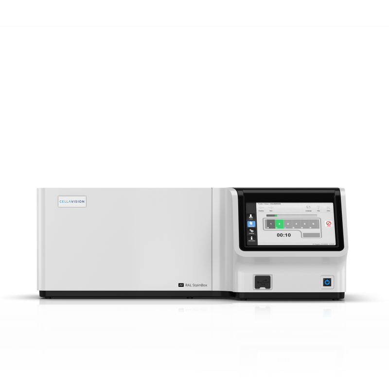 RAL StainBox ensures that all your smears are stained consistently and in accordance to your laboratory guidelines. The semi-automated instrument utilizes the bath method and effectively guides the technician through a step-by-step staining process. The instrument is used together with innovative staining kits that are methanol-free and ready to use. This pairing with high-quality reagents and validated staining protocols promises a first-class result every time.